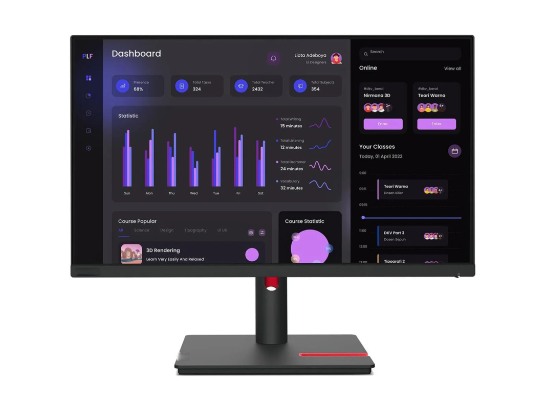 L’écran IPS du moniteur Leno T24i-30 offre un grand confort visuel grâce à son angle de vision ultra-large, offrant une précision des couleurs et une qualité d’image exceptionnelles. Son cadre quasi sans bords sur trois côtés vous permet de vous concentrer sur votre travail sans distractions. La qualité d’affichage est optimisée grâce à 99 % de couleurs sRGB pour une expérience visuelle impressionnante. Le confort est primordial avec le moniteur ThinkVision T24i-30, doté de la technologie Natural Low Blue Light qui minimise la fatigue visuelle et protège vos yeux.